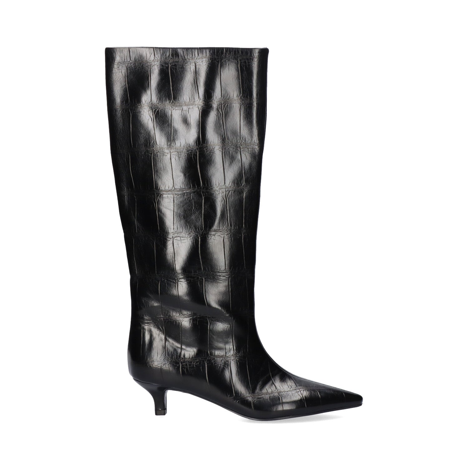 Bota de cano alto em material sintético com imitação de croco. Palmilha e forro em e tecido. Salto com altura de 4 cm.
