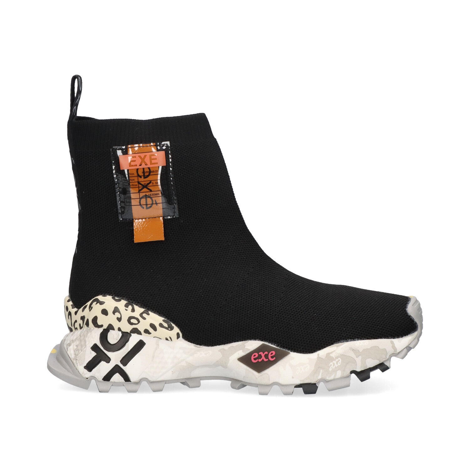 Ténis de em licra preta com sola de borracha e. Forro em tecido e palmilha em pele.