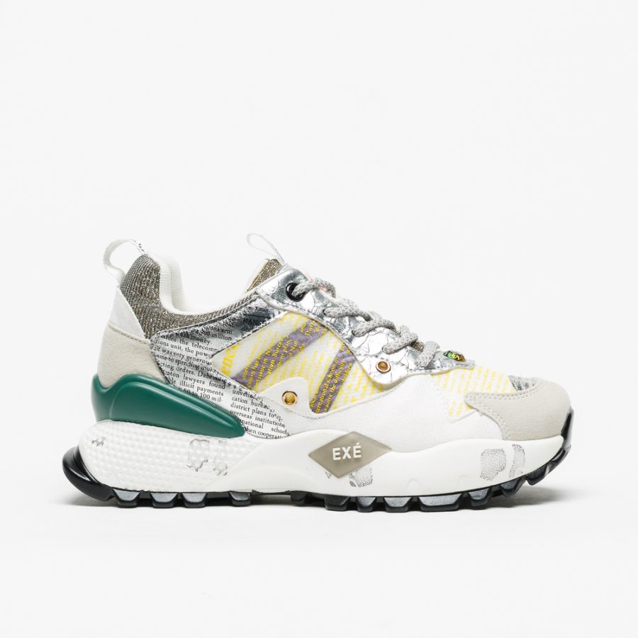 Ténis em material sintético multicolor elaborado com vários materiais. Sola de Borracha