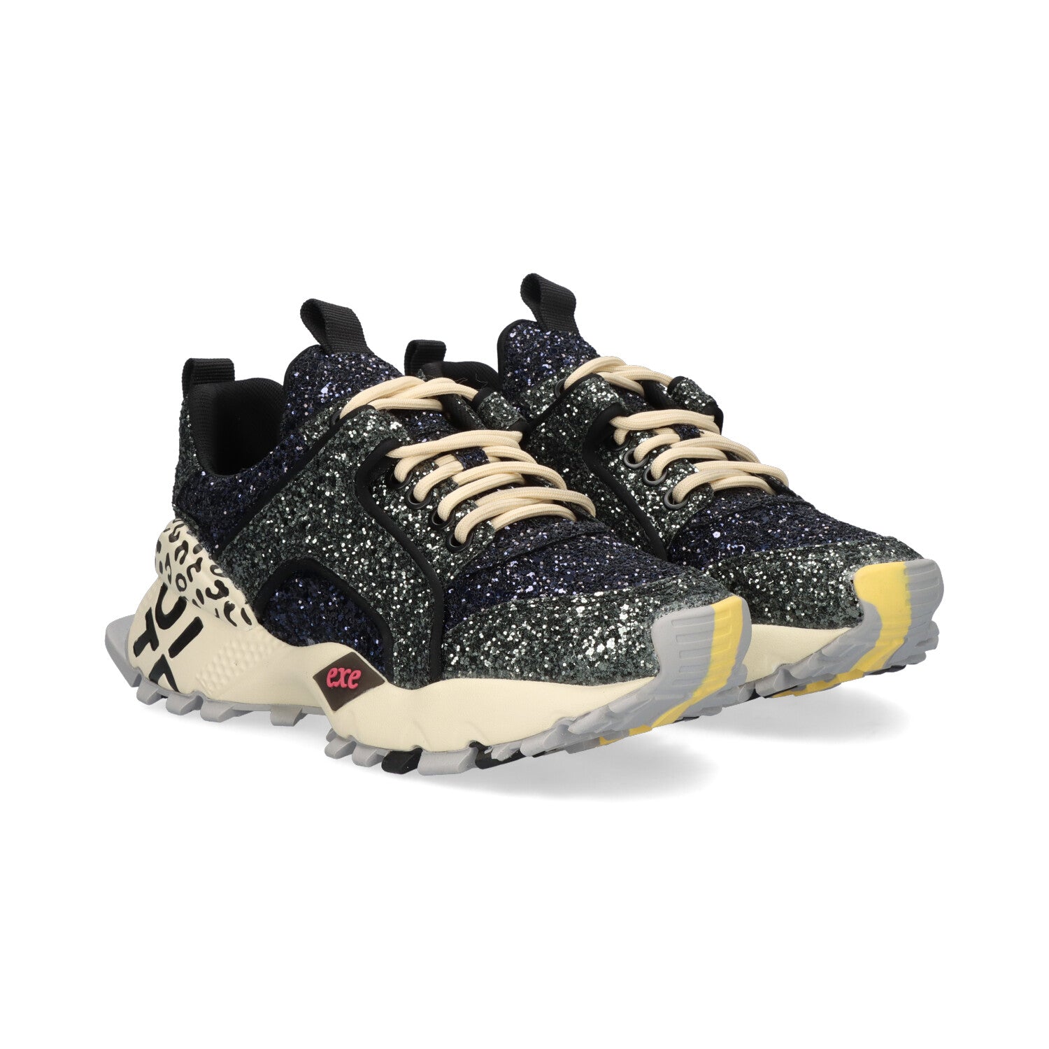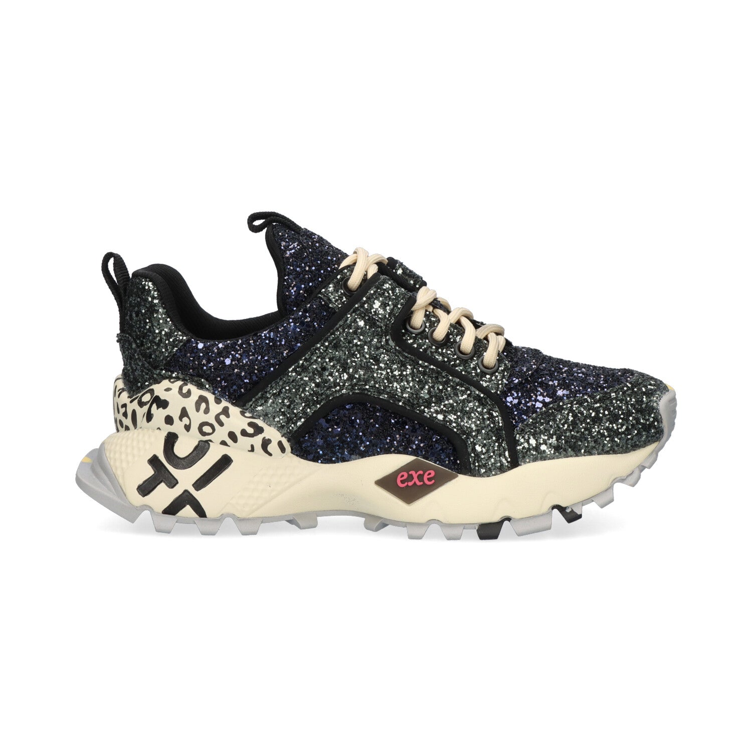 Ténis em glitter azul com sola de borracha. Forro em tecido e palmilha em pele.