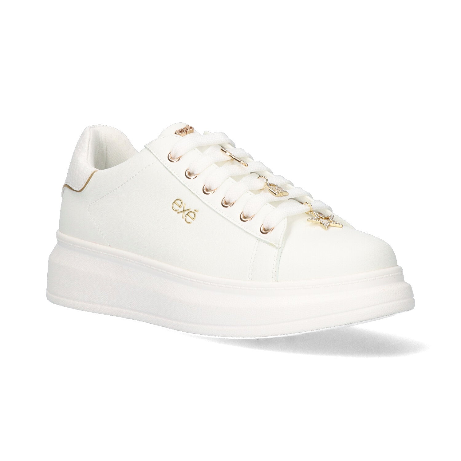 As sapatilhas EXE 66-22WEX166 WHITE destacam-se pela sua estética minimalista enriquecida por apontamentos sofisticados em dourado. O acabamento em tom claro cria um visual clean e intemporal, enquanto os detalhes metálicos nos atacadores e o logótipo lateral acrescentam um toque moderno e distinto.