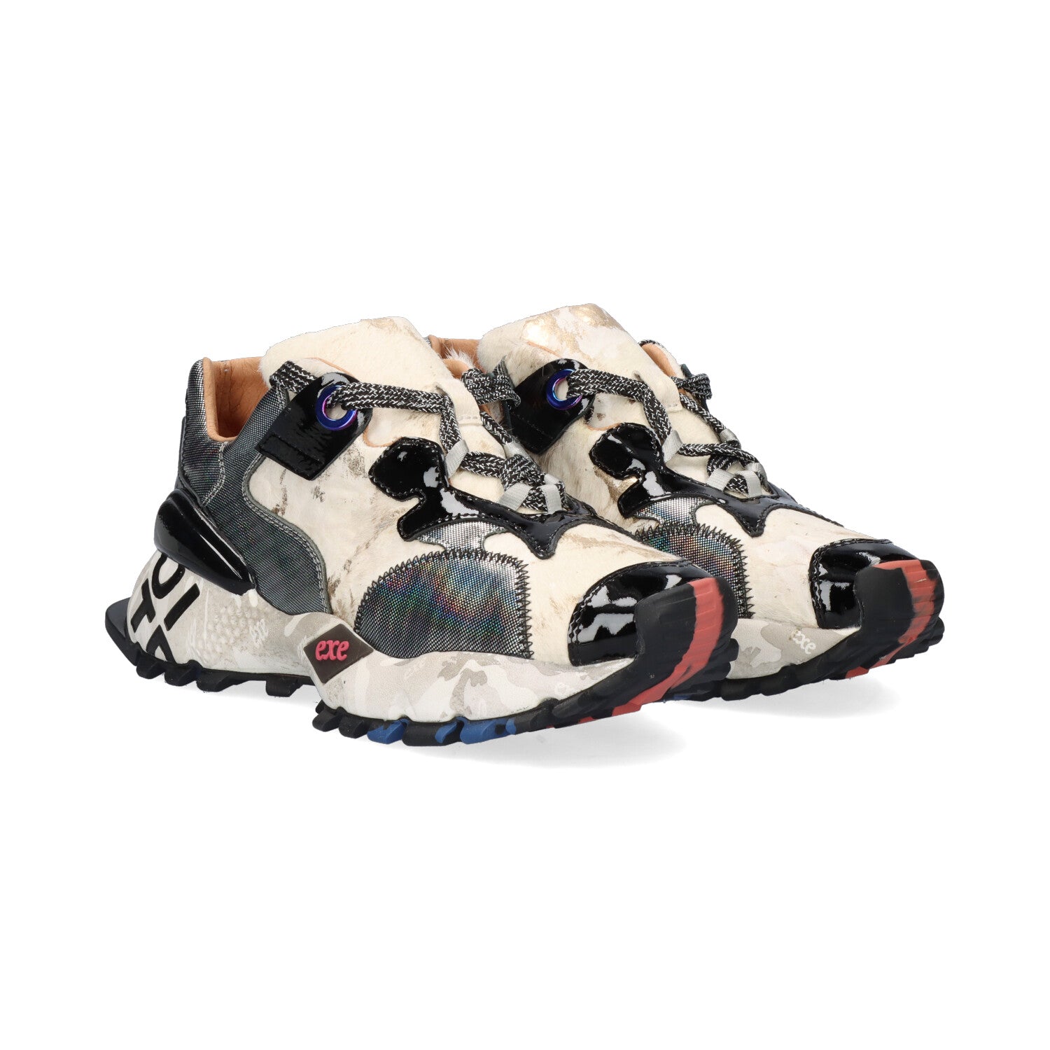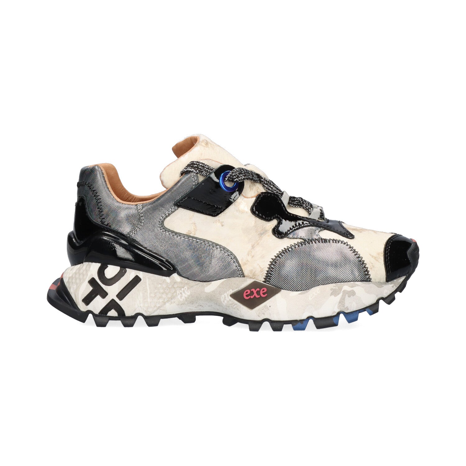 Ténis de pele e pêlo com sola de borracha. Forro em tecido e palmilha em pele.