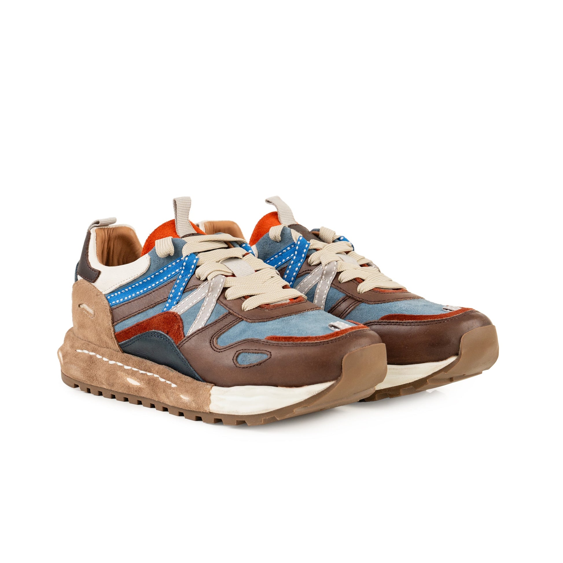 Estes exclusivos ABF-97 combinam camurça e pele genuína em tons de azul, castanho e laranja, criando um design sofisticado e cheio de personalidade. O interior em pele oferece máximo conforto, enquanto a sola em borracha pintada garante aderência e durabilidade. Um modelo versátil e distinto, perfeito para quem procura estilo e exclusividade no dia a dia.
